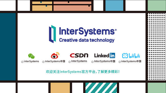 如果您希望获取更多资讯、动态,可以关注InterSystems官方微博、微信、领英及CSDN账户。此外,我们在和B站也开通了InterSystems中国官方账号,不定时更新由SE团队精心制作的视频课程、讲座等内容。