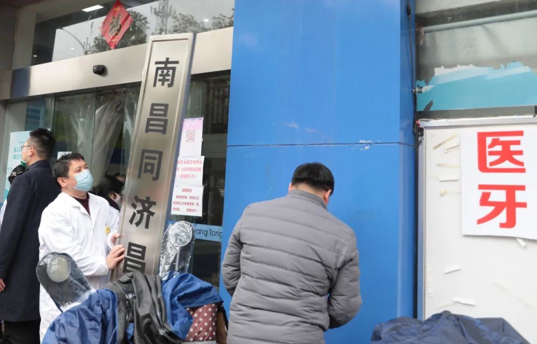 南昌市市场监督管理局对辖区内傍名牌医疗机构进行清理,医院正在摘下原来的招牌 郭杰文 摄