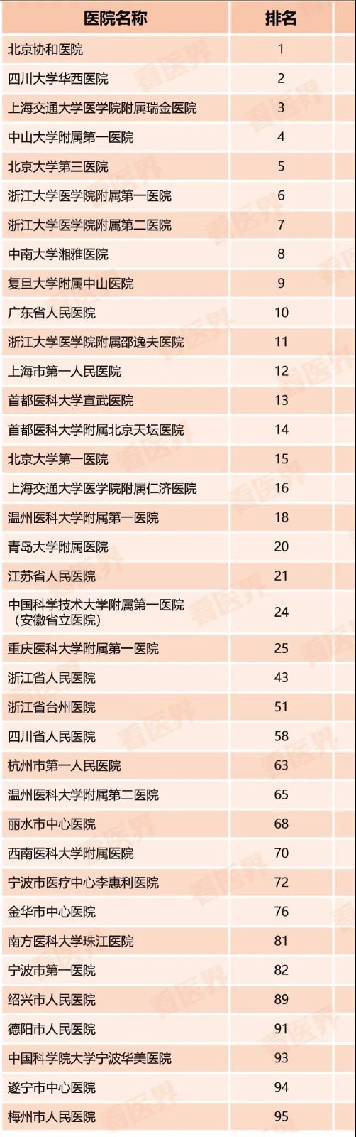 重庆医科大学附属第一医院原来39,现在25,上升了14位;