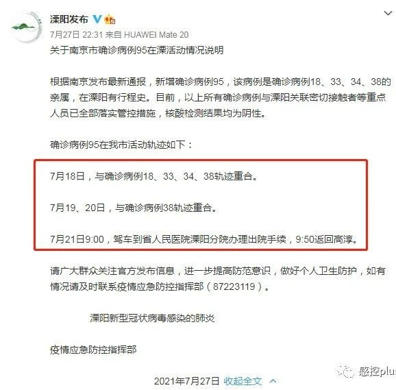 对此感控plus曾针对患者陪护问题进行过跟踪报道,27日上午和晚间,江苏溧阳发布分别对22日确诊患者亲属(医院探视陪同四人)行动轨迹进行通报。