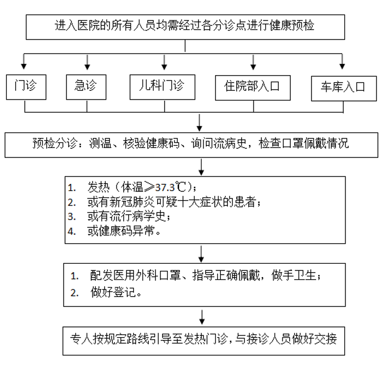 1.预检分诊实行24小时值班制:把好人员、车辆和物资“入口关”,对进入医院人员测温、核验健康(行程)码和流行性病学调查,检查口罩佩戴情况。