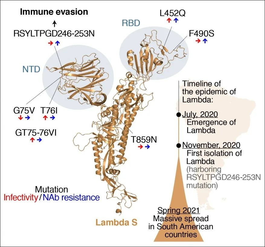 要实现大规模感染,必须具备两个特征:传染性增加和免疫逃逸能力增加。而这项研究表明,拉姆达突变株正好具备这两种能力。