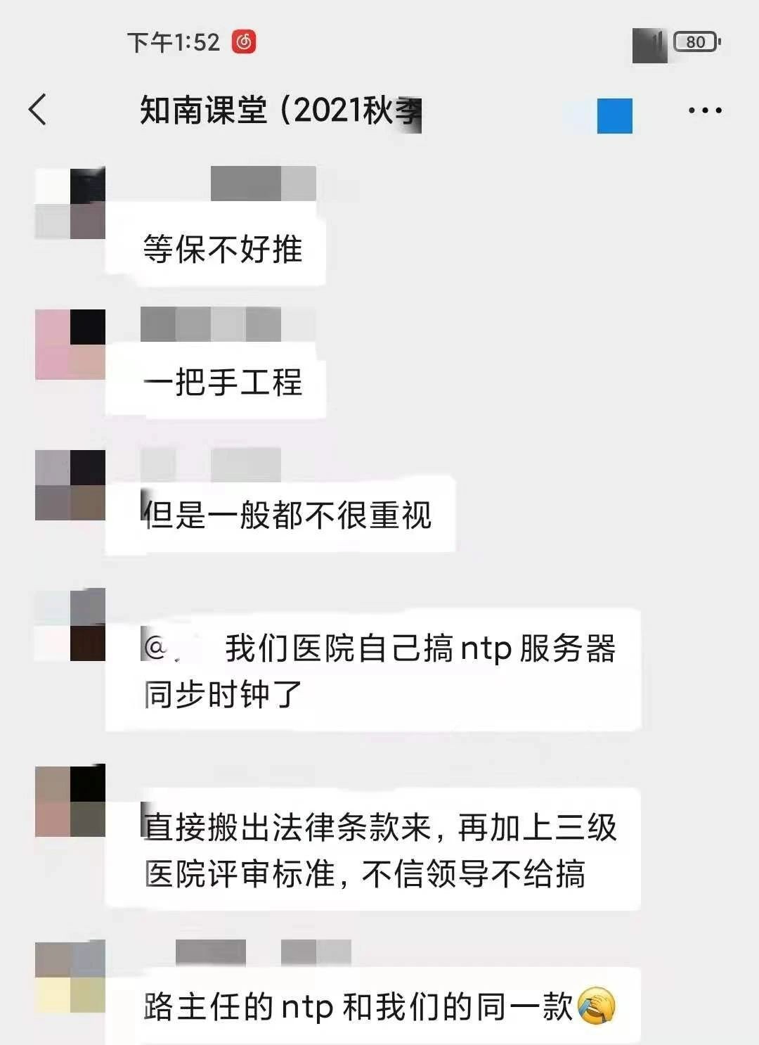 尽管国家对于网络安全建设的要求越来越高,但是身处医院信息科室的学员们对于开展网络安全工作仍然表示困难重重:领导不重视、评测太难、医护人员安全意识薄弱...