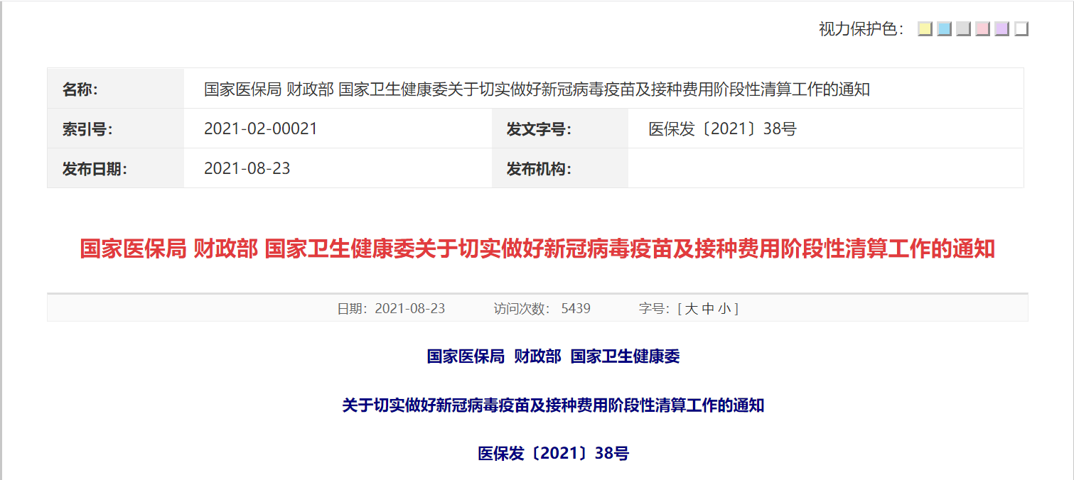 《通知》指出,2021年的资金清算工作要分批次进行,此次清算时间为2021年2月6日至6月30日的医保专项资金应付疫苗及接种费用方可进行清算。