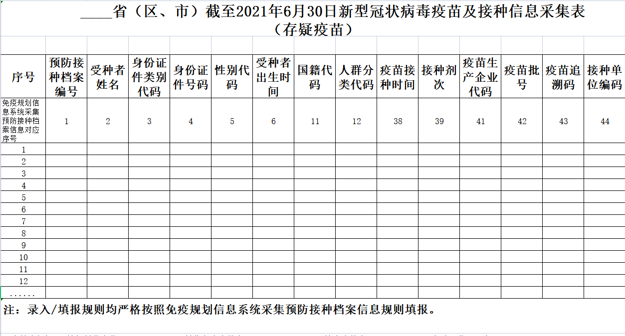 医疗机构需采集到的信息有受种者姓名、证件号码、疫苗接种时间、接种剂次、疫苗生产企业代码、疫苗批号、疫苗追溯码、接种单位编码等关键字段。对于表格内的信息一定要保证完整且符合校验规则。对于不符合规则的,要在5日内补充改正并提交。不能按时补充的,不纳入此次清算范围。