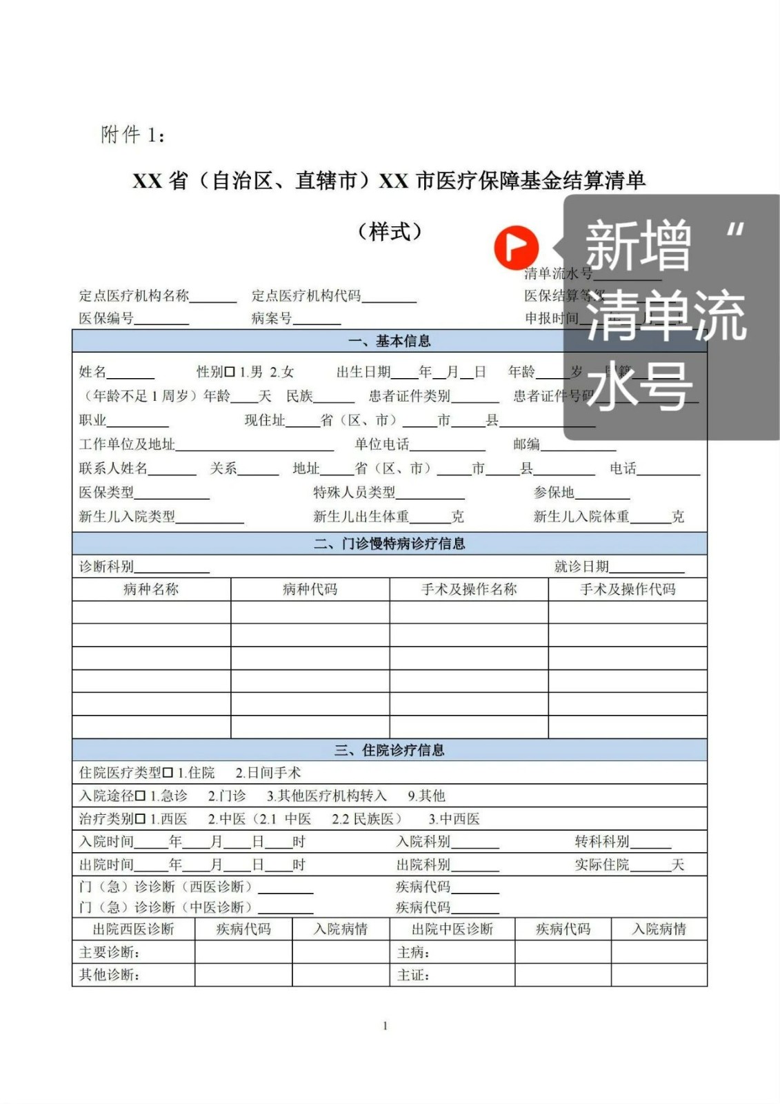 1.流水清单号:新增“流水号码的设置为每家定点医疗机构单独生成顺序码。”的描述;