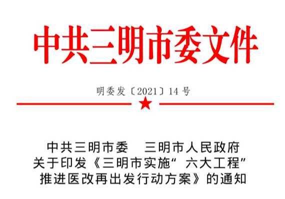 近日,中共三明市委、三明市人民政府联合印发《三明市实施“六大工程” 推进医改再出发行动方案》(以下简称《行动方案》)。
