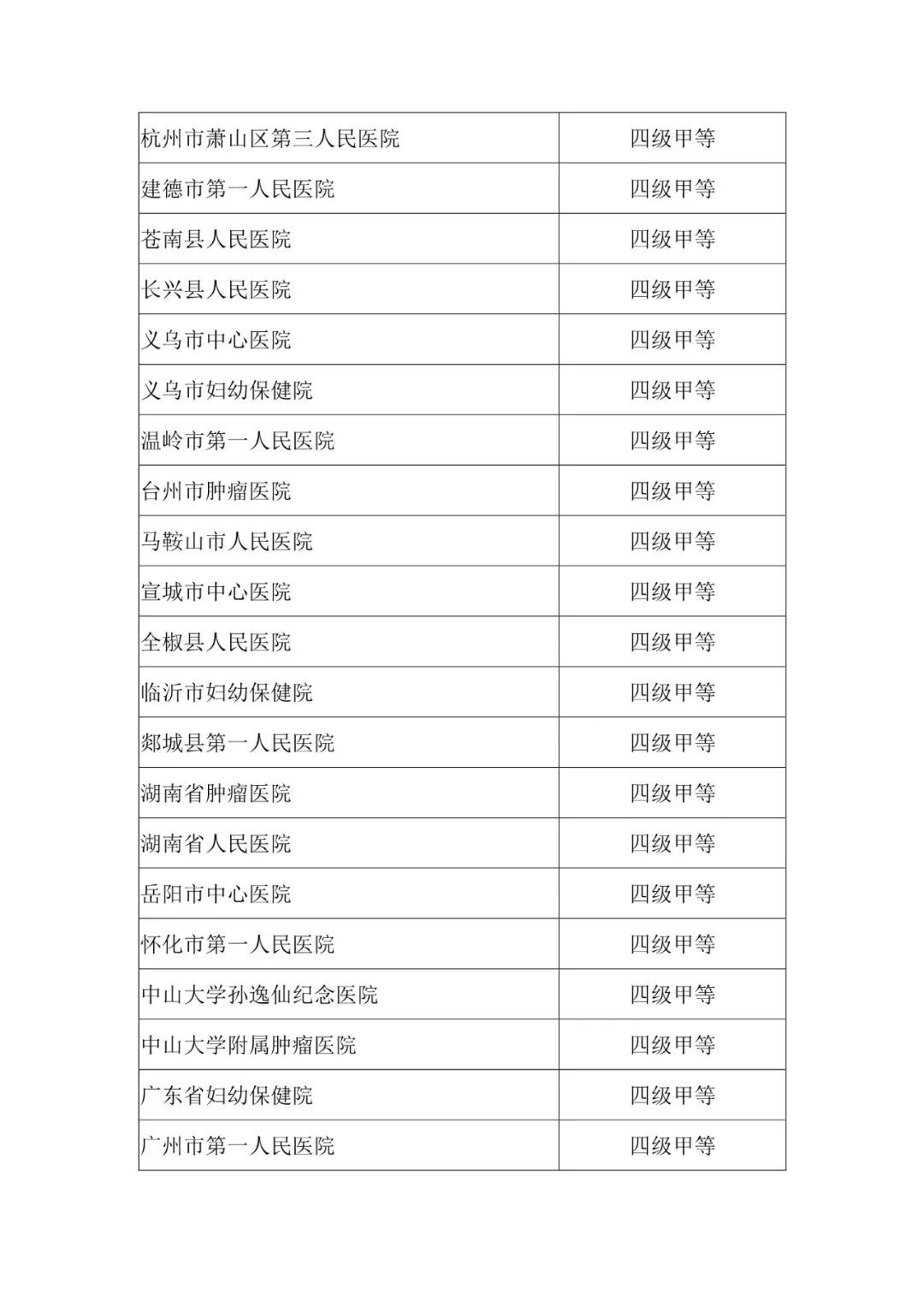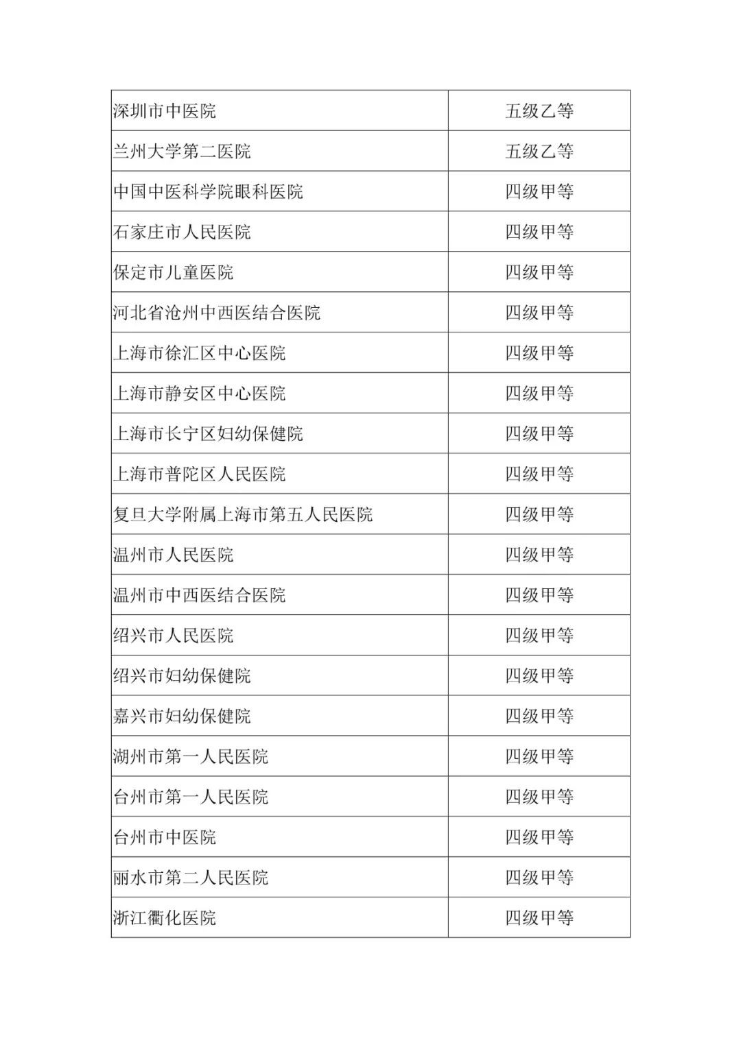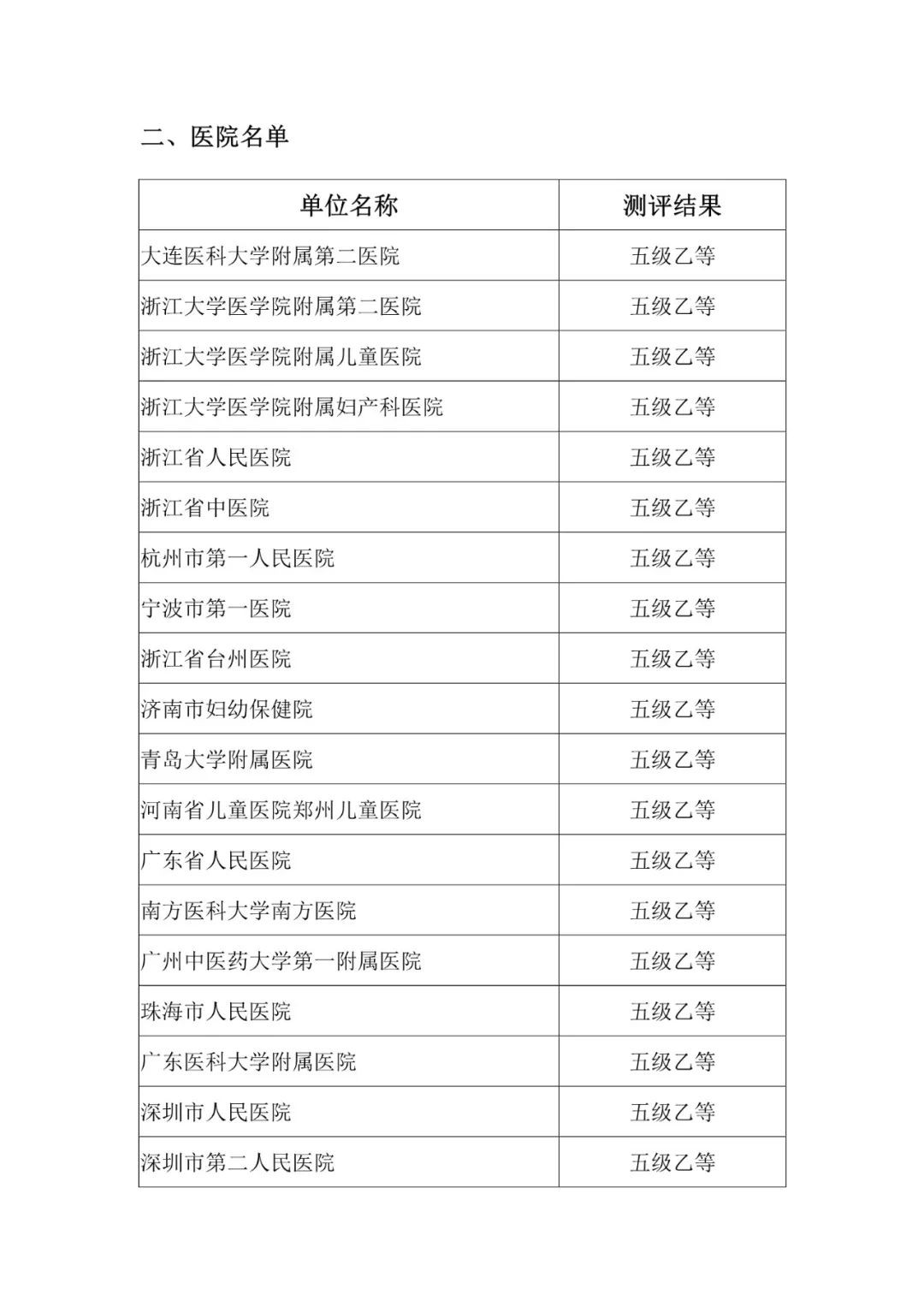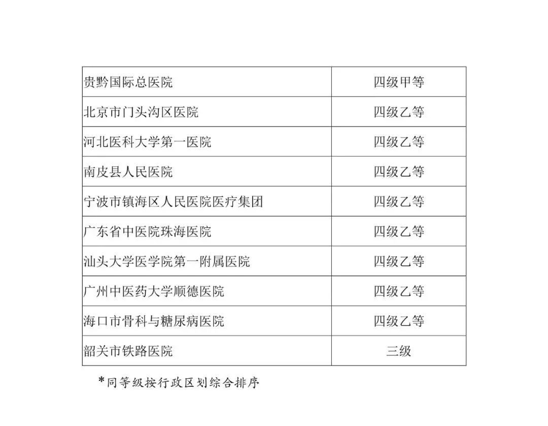 《通知》公示的10个区域名单中,共有7个区域获评四级甲等,3个区域获评四级乙等。在医院名单中,共有21家医院获评五级乙等,62家医院获评四级甲等,8家医院获评四级乙等,1家医院获评三级。