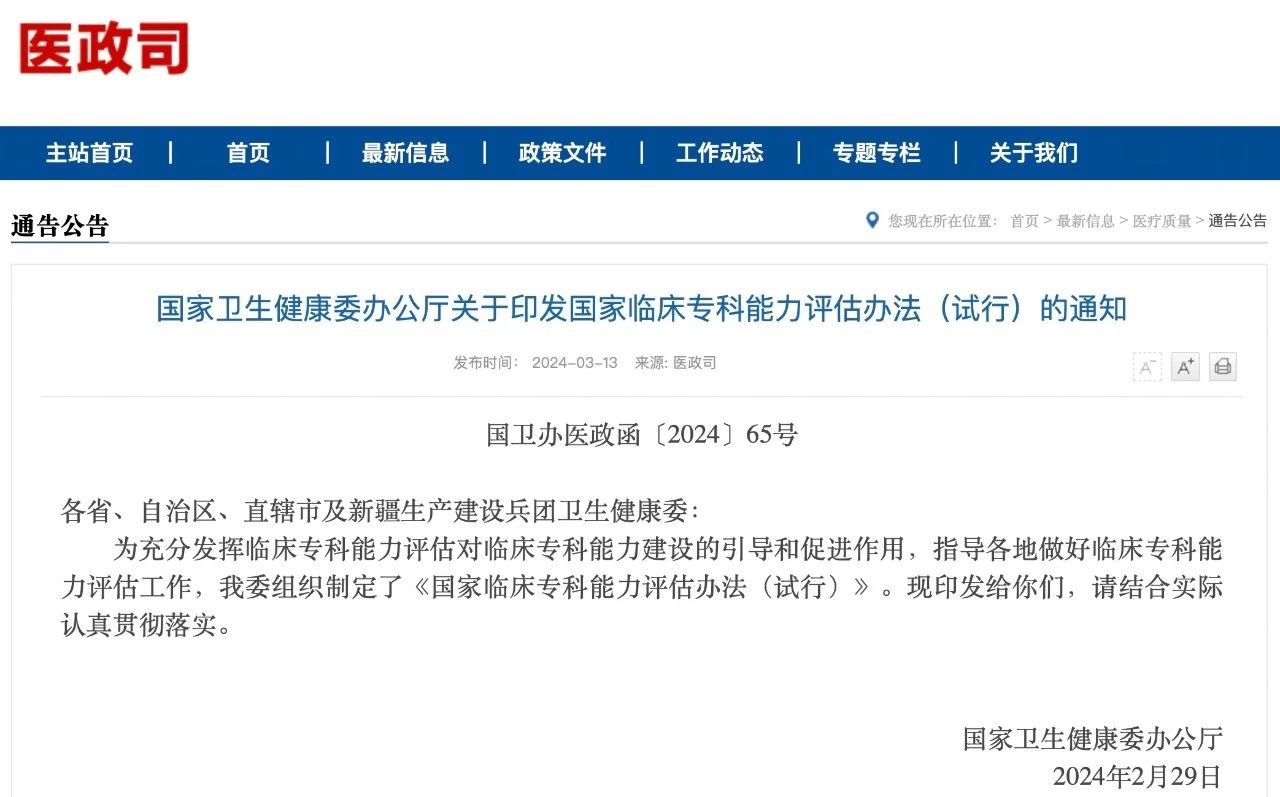 国家卫生健康委希望《评估办法》发挥“指挥棒”作用,推动医疗机构打破传统学科和科室壁垒,构建以患者为中心、以疾病诊疗为链条的多学科融合型临床专科。接下来,针对三个评估方向,具体评估临床专科(方向)及其评估操作手册将由国家卫生健康委另行制定。各省将参照国家临床专科能力评估方式方法,建立符合本地区实际的临床专科能力评估工作机制和数据监管机制,并对国家制定的14个临床专科(方向)具体评估指标进行适当调整,制定本省评估指标。