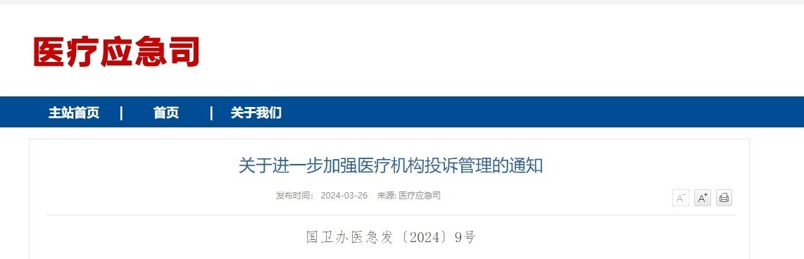 为深入贯彻落实党的二十大精神,推进更高水平平安中国建设,在卫生健康领域坚持和发展好新时代“枫桥经验”,提高医疗机构投诉处理规范化、科学化、法治化水平,推行接诉即办模式,改善医疗服务,提升患者满意度,现就进一步加强医疗机构投诉管理通知如下。