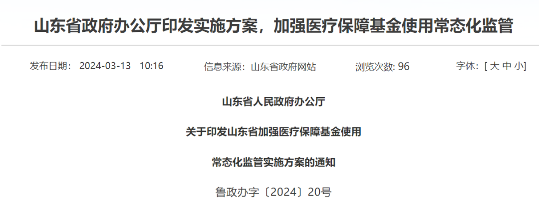 不仅仅是河北省,近期宁夏、山东也相继发布了实施方案,加强医疗保障基金使用常态化监管,宣布开展省内飞行检查计划。