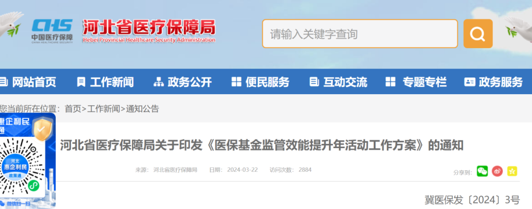 3月22日,河北省医疗保障局印发了《医保基金监管效能提升年活动工作方案》(以下简称《方案》)。