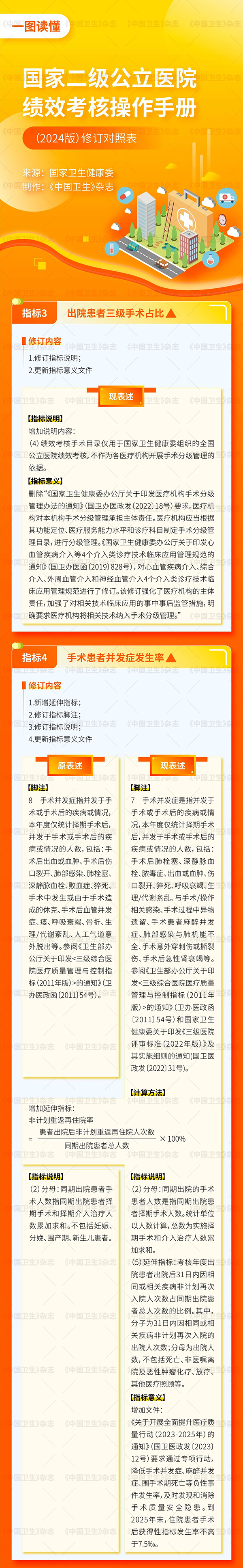 近日,国家卫生健康委根据实际工作需要和最新政策文件要求,对《国家二级公立医院绩效考核操作手册(2023版)》进行了修订完善,形成并发布了《国家二级公立医院绩效考核操作手册(2024版)》。