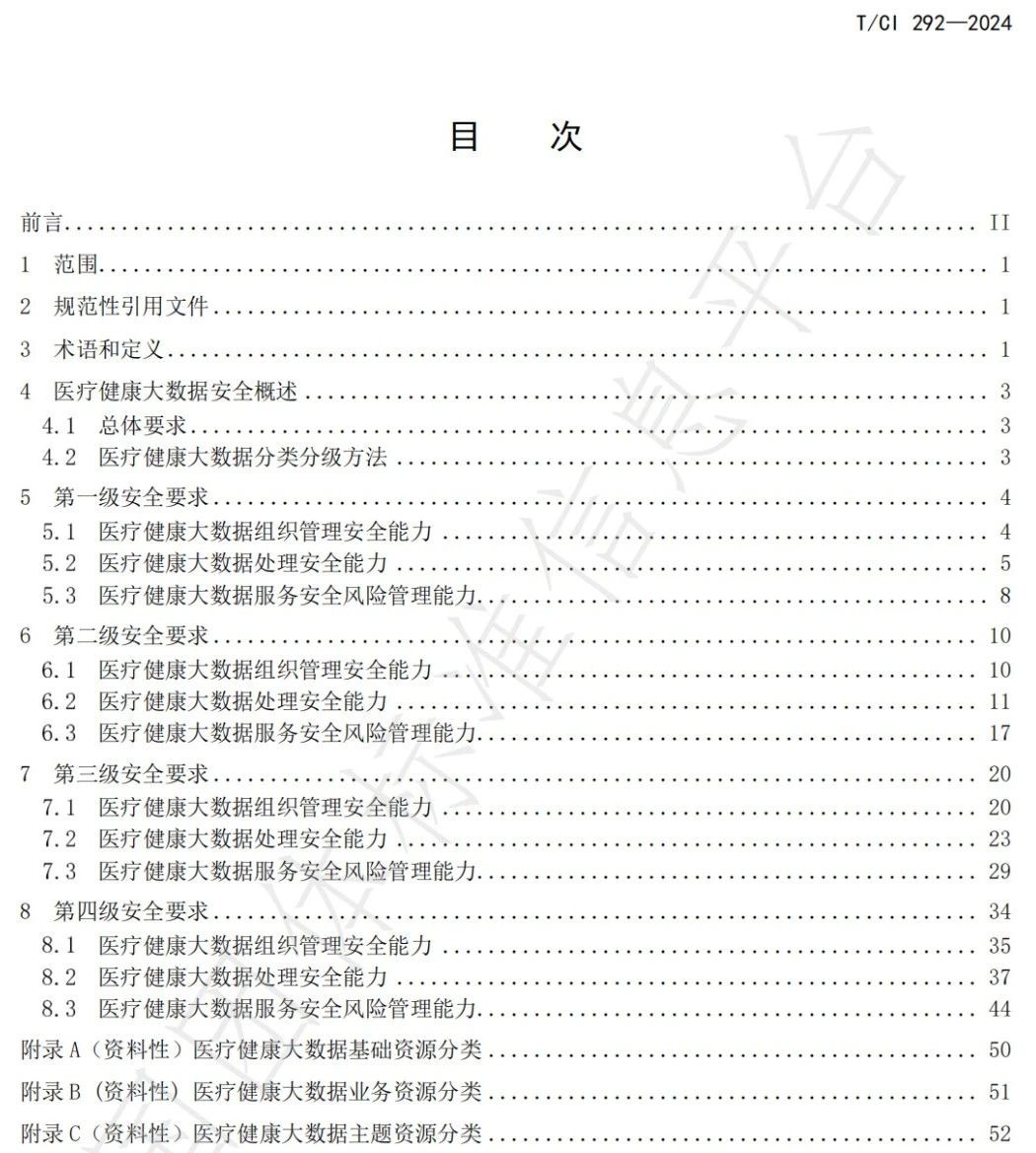 标准规定了医疗健康大数据分级保护的安全要求,适用于指导医疗健康大数据服务提供者分等级的大数据安全能力建设和管理。
