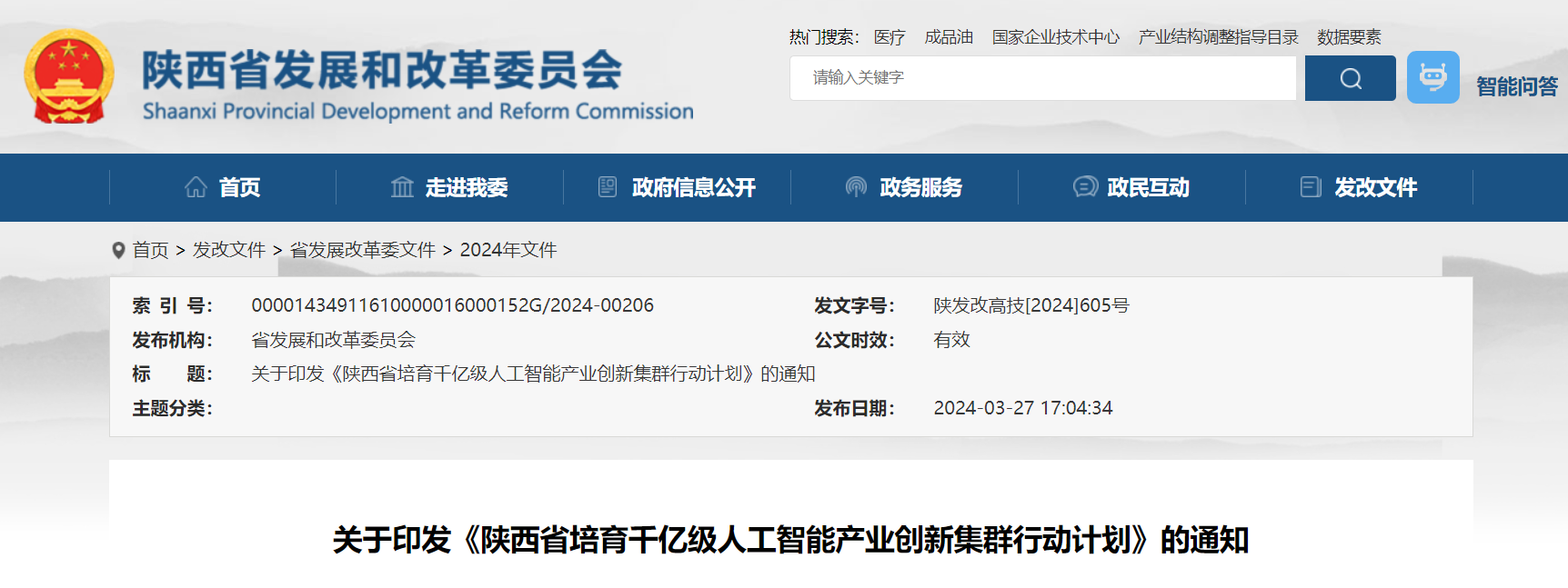 为紧抓产业发展机遇,加快形成新质生产力,增强陕西高质量发展新动能,日前陕西省发展和改革委员会印发《陕西省培育千亿级人工智能产业创新集群行动计划》,提出着力发挥科教资源富集、人才技术领先等优势,加快建设西安国家新一代人工智能创新发展试验区,加强人工智能的理论方法研究、核心技术自主创新、智能产品协同研发,壮大数智产业,围绕智慧医疗等多个重点应用领域,实施人工智能深度融合与赋能。