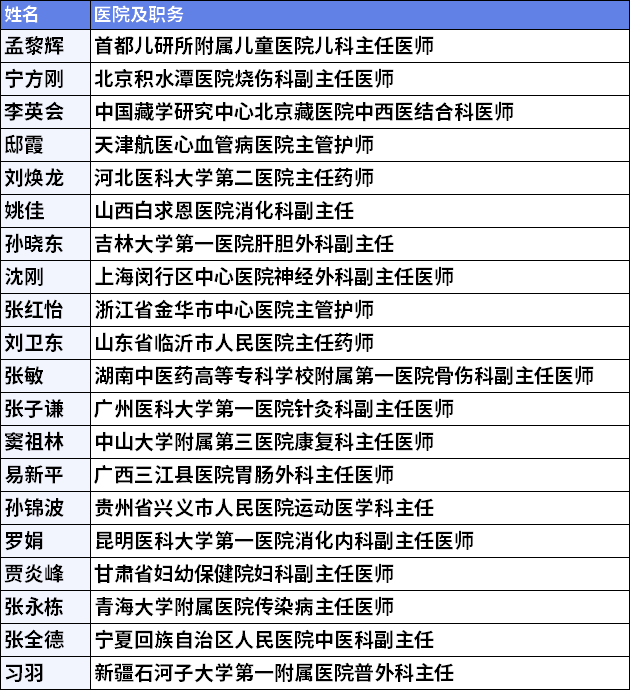 4月20日,医保局在上午、下午连办了两场座谈会,参会者为20名来自医院的一线医护人员。包括医师、护师、药师等,涉及科室有儿科、烧伤科、消化科、肝胆外科、胃肠外科、妇科等,几乎涵盖所有科室。其具体名单为: