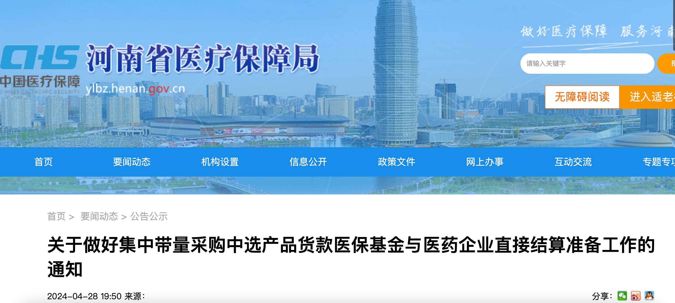 4月28日,河南省医保局发布《关于做好集中带量采购中选产品货款医保基金与医药企业直接结算准备工作的通知》,明确河南省定于2024年4月30日正式开展直接结算工作。