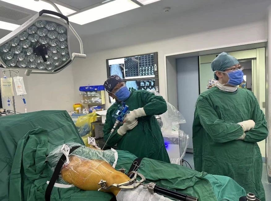 术中,在骨折复位机器人的辅助下,创伤骨科主任医师李宇能带领团队在微创条件下,两个小时内迅速完成闭合复位和一期完全固定。手术只有数个不到1厘米的切口,成功避免了切开手术的风险,挽救了患者的生命。