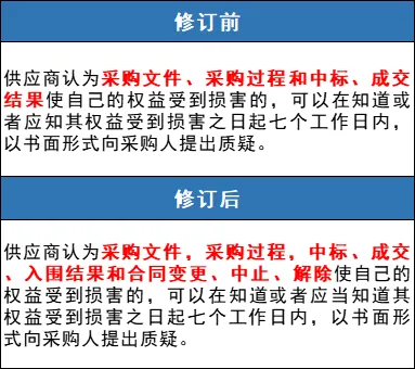首先国家层面,财政部此前发布关于《中华人民共和国政府采购法(修订草案征求意见稿)》再次向社会公开征求意见的通知,特针对供应商可质疑范围进一步清晰界定和扩大,覆盖了参与招投标的各个环节、可能遇到的各种情况。