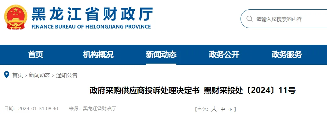 前段时间,黑龙江省财政厅的一则政府采购处理决定书显示:佳木斯大学附属第一医院被供应商投诉了。