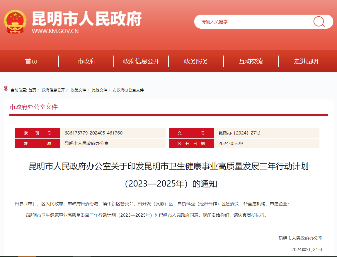 昆明市卫生健康事业高质量发展三年行动计划(2023—2025年)