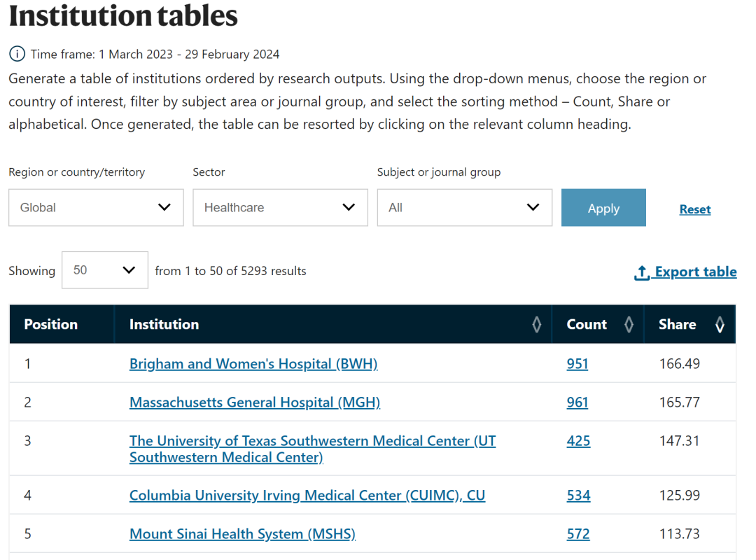 就医疗机构而言,自然指数的排名可以在一定程度上反应其在某一特定时间内在基础领域科研水平的高低。「从某种意义上说,自然指数也是一种更小范围的SCI指数和排名。」中国高校科技期刊研究会常务理事刘天星曾发文指出。