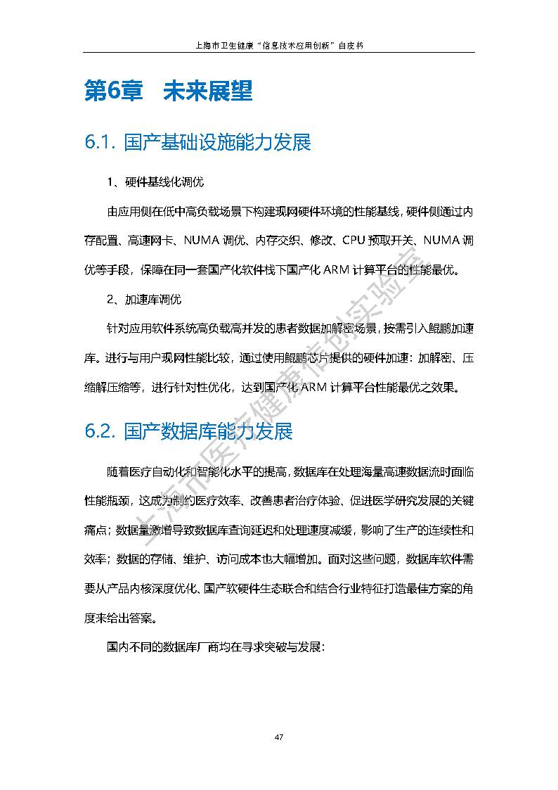 《白皮书》主要从政策及发展背景、落地应用挑战、生态发展现状三个方面介绍了上海市医疗健康信创实验室的创立背景和组织运作方式等工作;通过研究科学的信创核心应用适配方法、展开应用领域的规划和设计,并输出可供行业参考借鉴的最佳实践,详细阐述了实验室前期的工作成果;最后,对基础设施及应用领域的关键技术、未来技术发展趋势等方向进行探讨,探索与洞察未来医疗卫生行业的创新发展远景蓝图。