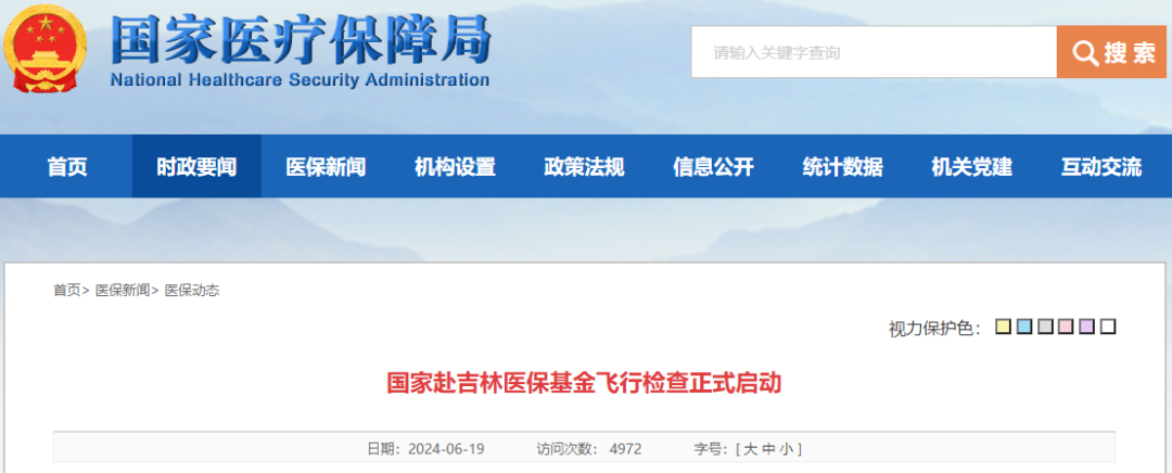 6月19日,国家医保局官网发文:国家赴吉林医保基金飞行检查正式启动。
