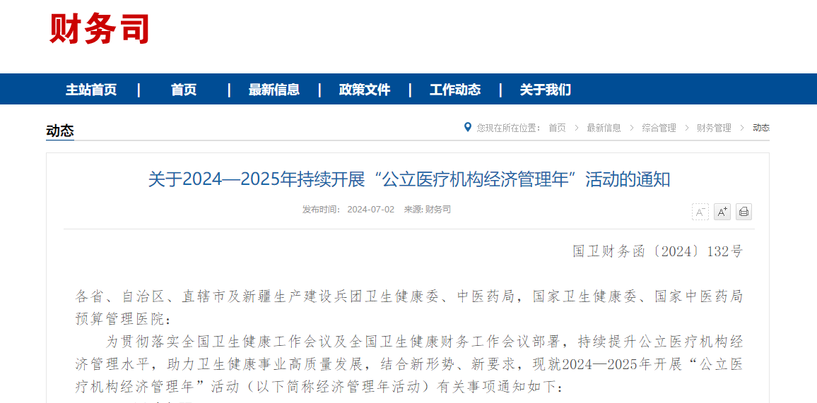 关于2024—2025年持续开展“公立医疗机构经济管理年”活动的通知
