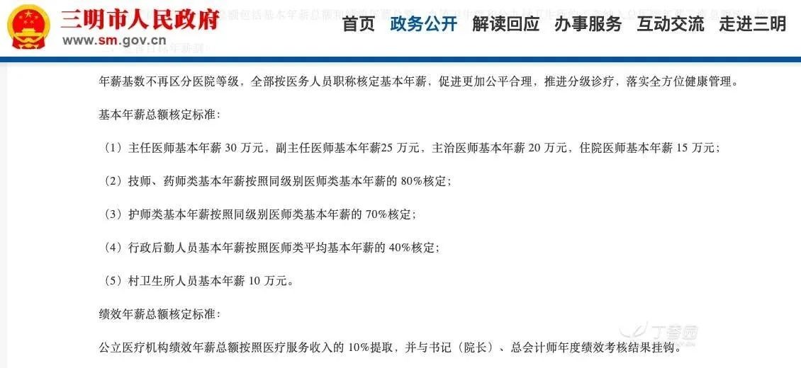 “目标年薪制”始于2012年福建省三明市的医疗改革,各地薪酬改革基本是从书记、院长年薪制开始试点落地,然后推进医生年薪制。