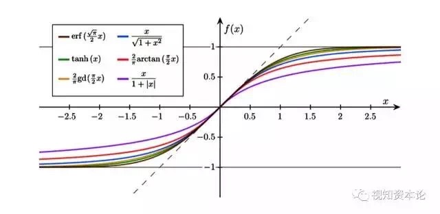 不过现在的神经网络会引入一种叫做激活函数的东西,把这种一刀切的智障变成一个稍稍聪明一点的样子: