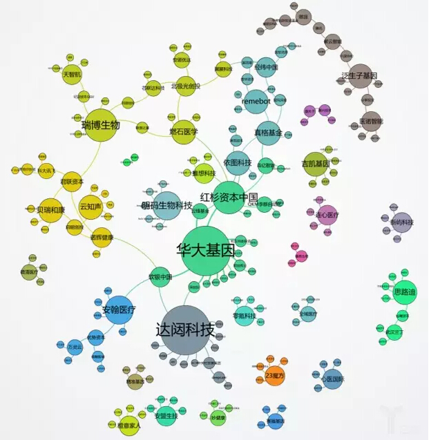 截止至2017年8月15日,国内医疗人工智能公司累积融资额已超过180亿人民币,融资公司共104家;另有27家公司未获投,或未公布融资信息。“中国医疗人工智能资本市场社会网分析图(主要投融资方)”显示,目前中国资本市场中的明星企业是华大基因和达闼科技,二者的投资关系数量最多;资本市场中的活跃投资机构主要有红杉资本中国、真格基金、北极光创投、经纬中国和软银中国,上述五家投资机构对医疗人工智能企业的关注度最高;