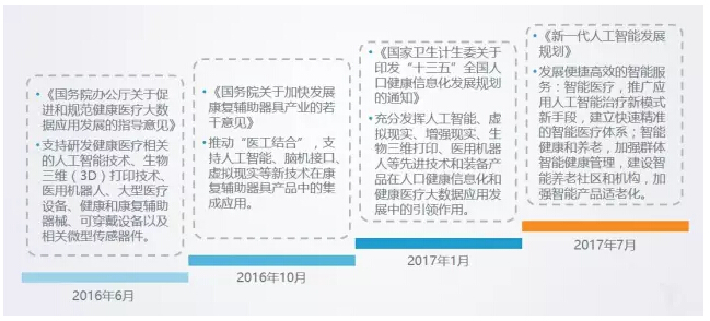 我国医疗领域总体呈现供需不平衡、卫生人员素质有待提升、结构性问题突出、资源浪费的现状。人工智能与医疗的结合,是解决医疗痛点的新机遇。为此,国家自2015年起相继出台数十项政策性文件,逐步将人工智能提升到国家战略层面,并对医疗领域提出人工智能发展要求。