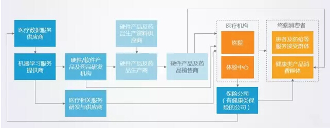 人工智能技术的“赋能”,主要体现于医疗人工智能公司所开发的产品及服务,不仅使传统医疗生产活动成本降低、效果增强,而且为医疗相关产业链带来了新变化,例如机器学习服务提供商的出现、保险公司用户健康数据分析的需求与医疗数据服务供应商之间建立的商业新模式等。