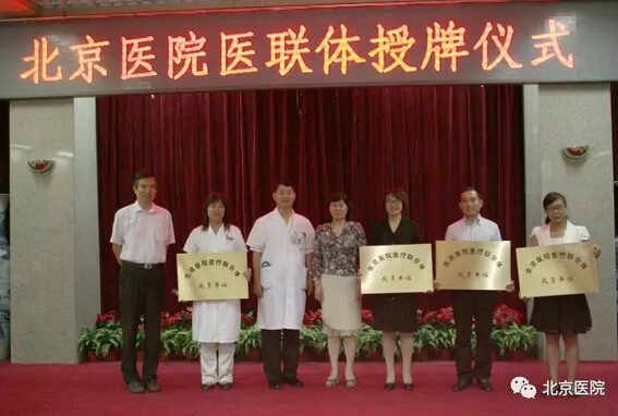 2014年6月,在北京市卫生计生委、东城区政府及东城区卫生计生委的组织领导下,以北京医院为核心单位,北京市普仁医院、北京市东城区龙潭社区卫生服务中心和北京市东城区东花市社区卫生服务中心为成员单位,正式成立了“北京医院医疗联合体”,这也是东城区首家医联体。经过三年多的探索与实践,北京医院医联体不断扩容,先后吸纳北京市隆福医院、东城区第一人民医院、北京市第六医院、北京市东城区永外社区卫生服务中心、北京市东城区第一妇幼保健院和北京市东城区第二妇幼保健院等6家医疗机构,形成了三级医院、二级医院、妇产医院、社区卫生服务中心等多元化的医联体,覆盖社区居民二十万余人。