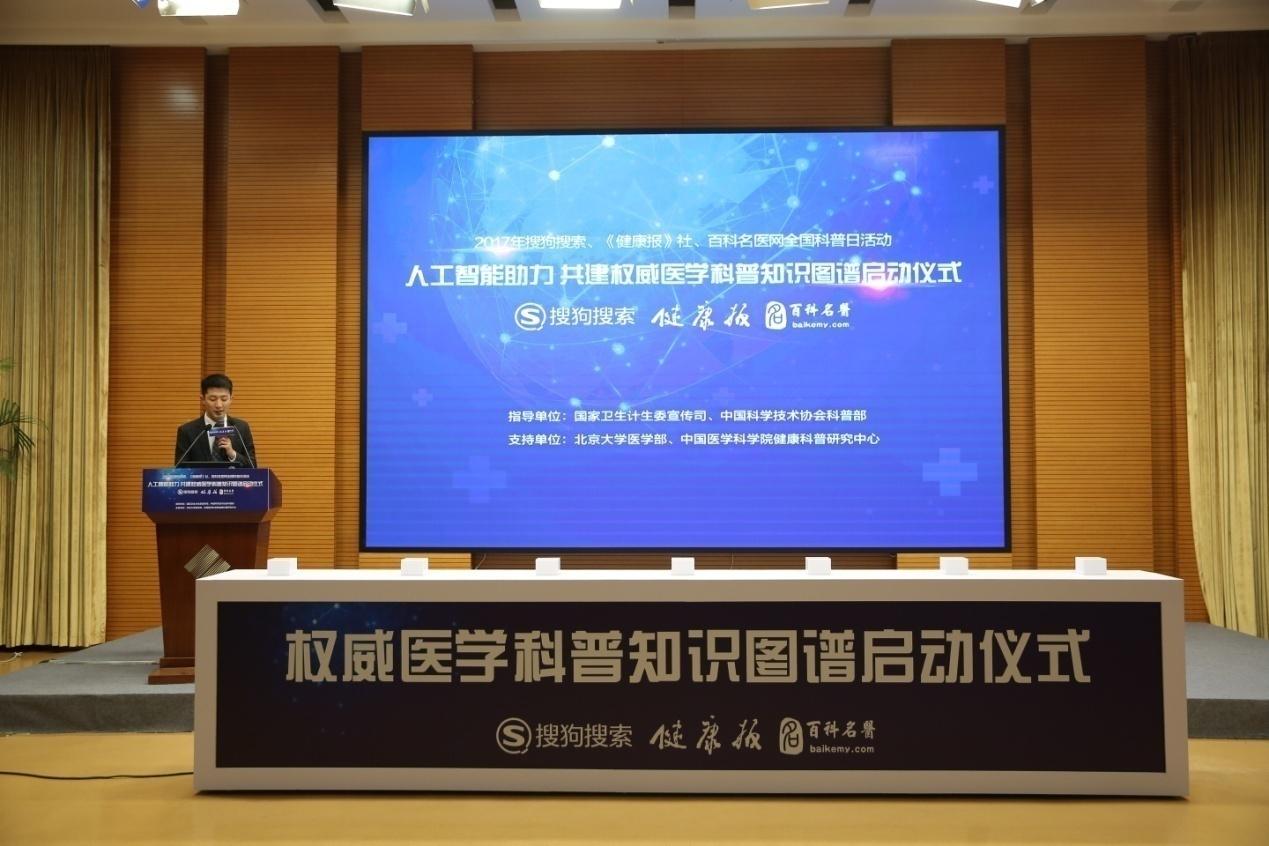 全民健身在健康中国建设中发挥着越来越重要的作用。9月17日,由搜狗搜索、《健康报》社、百科名医网联合发起的“人工智能助力 共建权威医学科普知识图谱”启动仪式在中国科技会堂成功举行。中国科学技术协会科普部部长白希、国家卫生计生委宣传司主要领导、中华预防医学会会长王陇德院士、搜狗公司COO茹立云、《健康报》社副总编辑杨秋兰、百科名医网董事长朱晓兵、北大医学部郑志杰教授等出席该启动仪式。