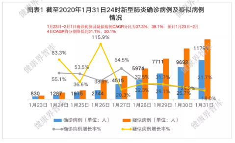 自新冠肺炎最早的病例2019年12月1日在武汉发病,疫情肆虐武汉,并向全国蔓延。截至2020年1月31日24时,根据国家卫生健康委披露数据,全国31个省(自治区、直辖市)和新疆生产建设兵团累计报告新冠肺炎确诊病例11791例,重症病例1795例,累计死亡病例259例,累计治愈出院病例243例,共有疑似病例17988例。累计追踪到密切接触者136987人,当日解除医学观察6509人,共有118478人正在接受医学观察。当前,疫情防治仍面临极大压力和挑战。