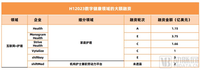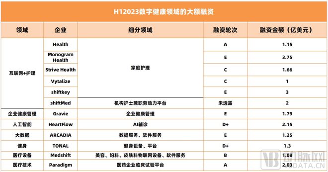 图:根据《H1 2023 digital health funding:A Brave New(lower funding)World》及公开信息整理