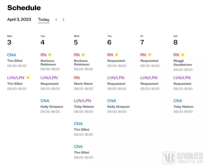 而在上门护理的场景下,Shiftkey要应对“随机”的挑战,对上门护理的工作流程管理是关键。因此,与其他“共享护士”平台不同,Shiftkey的创新主要围绕大数据下的“可视化工作表”进行。