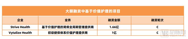 上半年7笔融资中,基于医疗价值的护理项目共有2个。一个是上文提及的Strive Health,一个是为老年人提供远程护理,并支持初级健保体系的Vytalize Health。