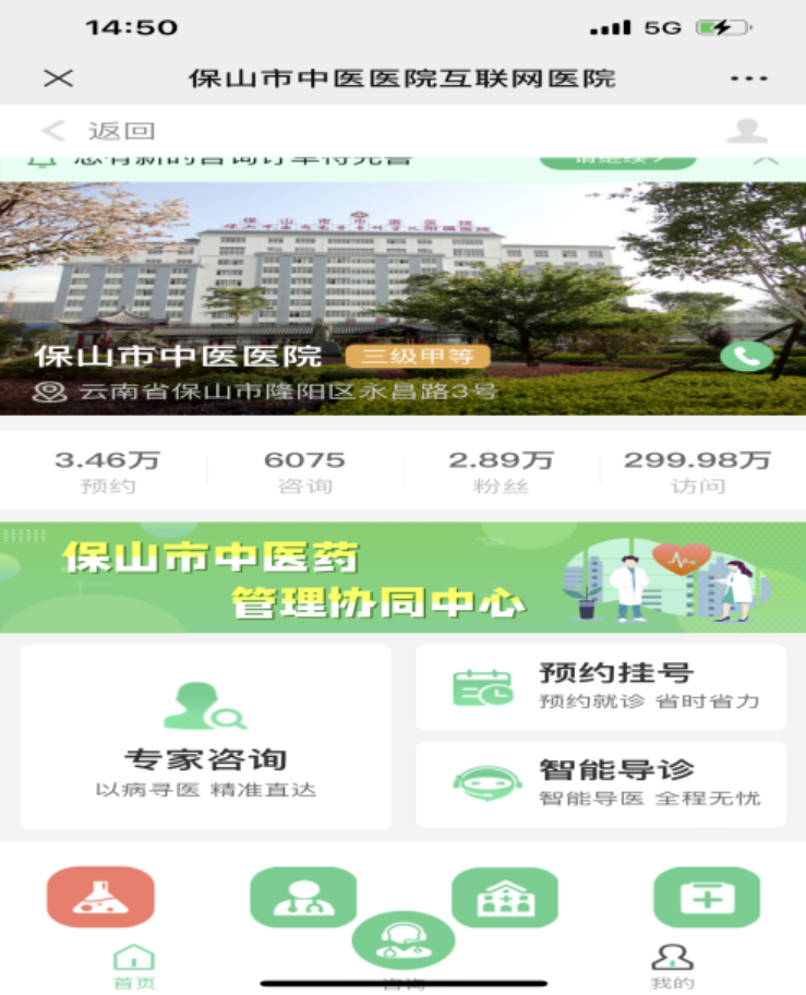 为切实做到让百姓少跑腿、数据多跑路,为患者提供优质便捷的诊疗服务,保山市中医医院于2018年成功上线互联网医院,截止目前,已实现:线上建档、预约挂号、门诊缴费、报告查询、住院费预缴、账单查询、报告单解读、在线问诊、云药房、在线复诊开方、面对面开方、在线支付、电子健康卡、医保移动支付、诊间配送、在线开检查/检验单、送药到家、诊后随访、患者评价等业务功能。完善便捷的服务,不仅为患者就医提供了便利,同时收获了广大群众的广泛好评。