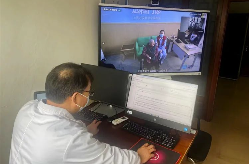区中医医院结合社会福利院的医疗资源和就医需求,开设了脑病科、内分泌科、脾胃病科、呼吸科4个远程专科门诊,并安排4位专家每周轮流坐诊。每位老人就诊时由一名护理员和一名工作人员陪伴,帮助老人与医生进行视频连线沟通,方便医生及时了解患者病情,并提供相应的建议和治疗方案。