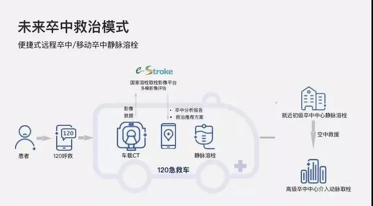 而沈阳东软医疗系统有限公司此前研发的Mobile CT,也为脑卒中患者带去了帮助。Mobile CT可实现患者转运过程中的诊断和溶栓治疗,大幅度提高生存率及生活质量。对于需要支架、手术的病例,通过智能云将数据传输到医院,患者到达医院后可直接进行相应的治疗,大幅度提升救治成功率及生存质量。