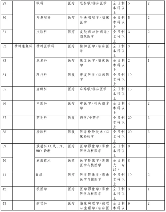 1.应聘医疗岗位者,第一学历应为普通高等教育全日制本科学历且具有学士学位;应聘护理、药学、医技及紧缺岗位者,学历可放宽至全日制大专学历。