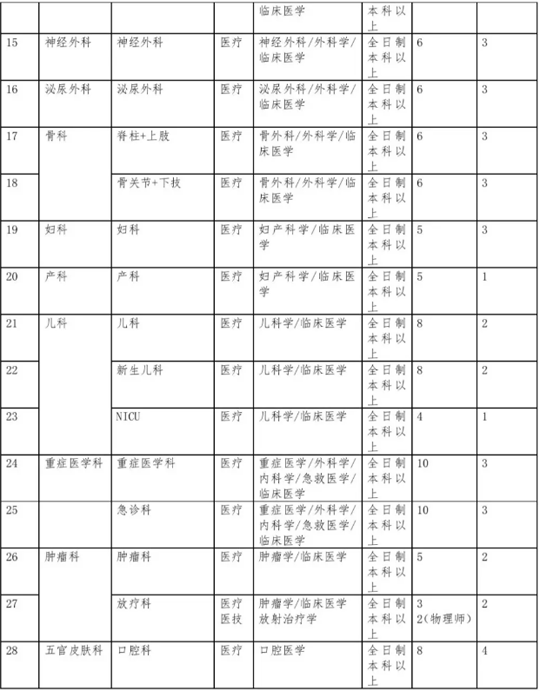 招聘对象为临床医、药、护、技等各层次专业技术人员、临床基础科研人员、管理人员、全日制普通高等院校毕业生和具有国家承认学历的人员。