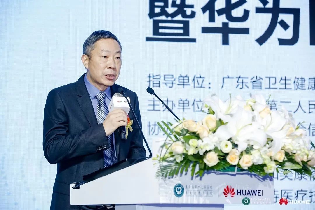 随后,广东省卫生健康委员会主任、党组书记段宇飞在致辞中指出,要始终坚持以“互联网+医疗健康”为支撑,深化医改、推进健康广东建设,服务“顶天立地”医疗卫生大格局取得良好成效。日前,智慧就医服务已全面覆盖广东省所有三级医院、90%二级医院,其中“一键诊疗”、“一站会诊”重塑了诊疗流程,“一码通用”、“一体服务”改善了就医体验。疫情期间,5G、AI、大数据等新ICT技术更是在人流通行、流行病调查、患者诊疗等多个场景广泛应用。80余家互联网医院开设网上发热门诊、AI医生提供“无接触”问诊,累计服务达269万人次,大大降低了疫情传播风险,提升了诊疗服务效率。未来,广东省还将持续提升群众就医体验、促进分级诊疗服务,为推动卫生健康事业高质量发展,探索更多以“互联网+医疗健康”为支撑的广东智慧、广东方案、广东经验。