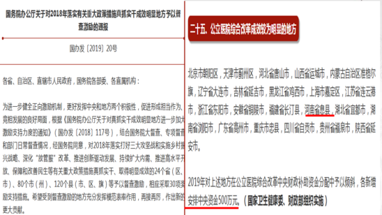 (1)2019年5月7日国务院办公厅关于对2018年落实有关重大政策措施真抓实干成效明显地方予以督查激励的通报,息县获得公立医院综合改革成效奖励。