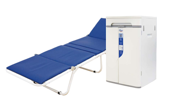 由床头柜、折叠陪护床及智能物联网锁组成,使用方便,通过微信小程序“蒜伴”直接扫码支付使用,产品获得多项专利,得到国家认可的第三方检测机构认证。床头柜和折叠陪护床结合的形式提升了病房空间使用率。按医院需求设置使用时间,优化医院管理秩序。