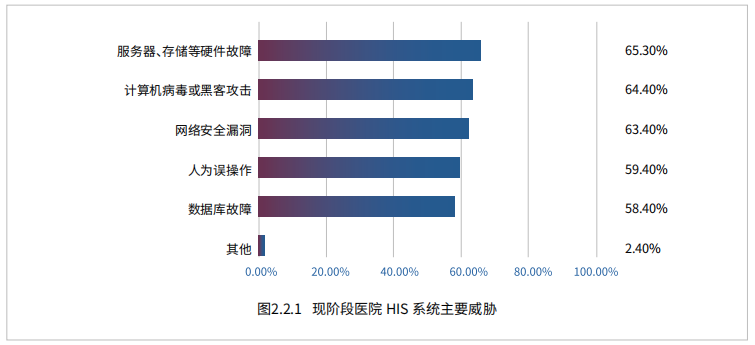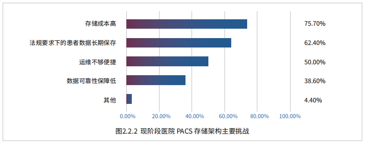 《报告》对样本对象现阶段HIS系统核心威胁、现阶段PACS存储架构核心挑战展开调研,可知目前医院的信息系统普遍仍存在较多问题: