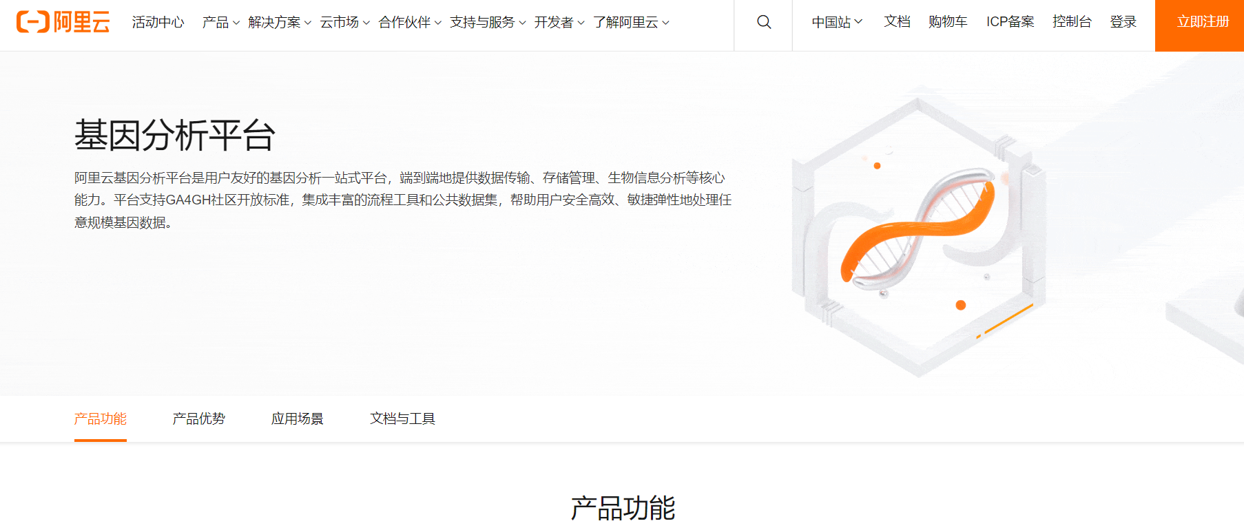 1.进入官网首页(https://cn.aliyun.com/product/ai/genomics),点击“免费开通”后登录。